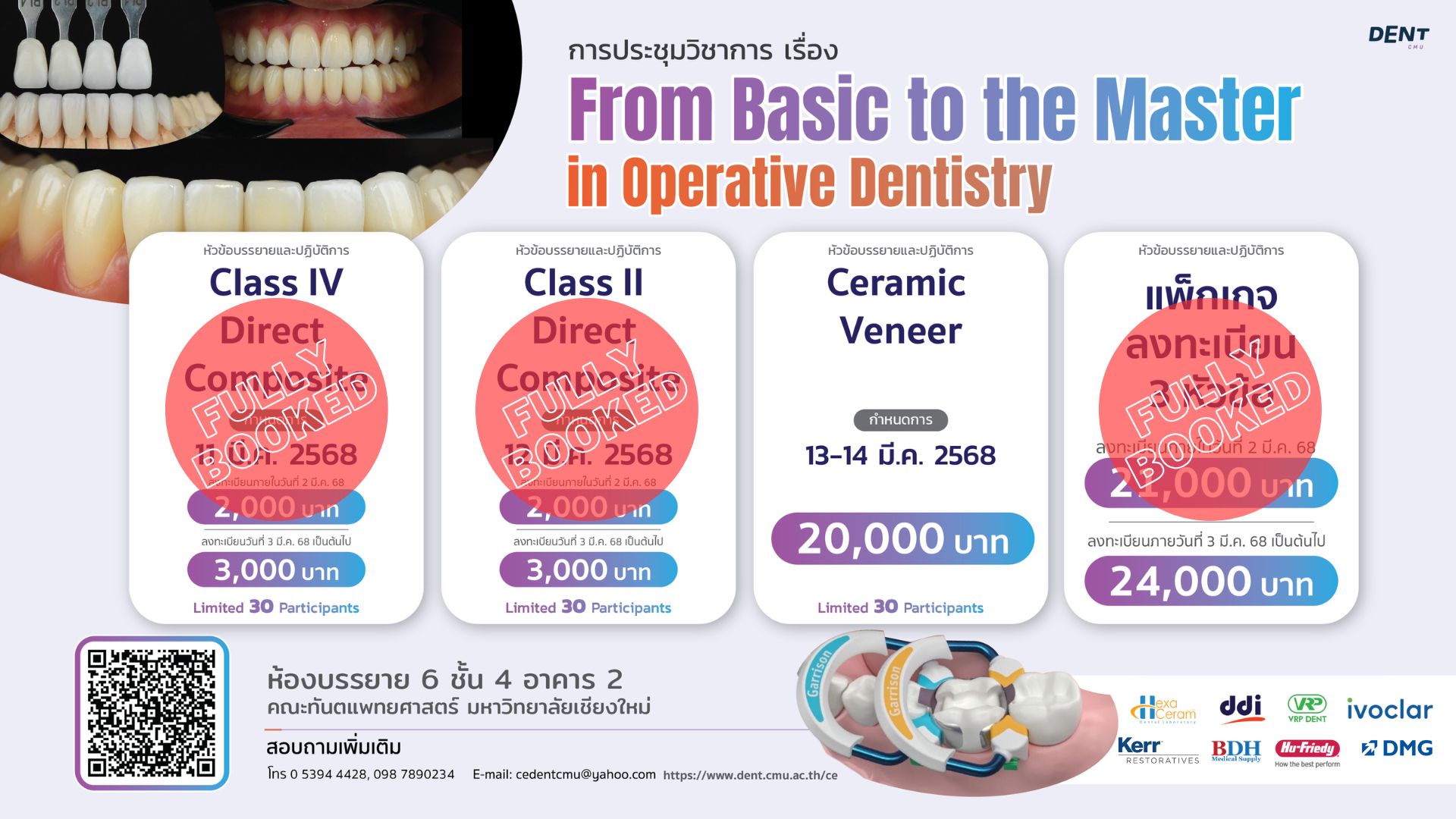 บรรยายและปฏิบัติการ 1. Ceramic Veneer 2. Class II Direct Composite 3. Class IV Direct Composite |